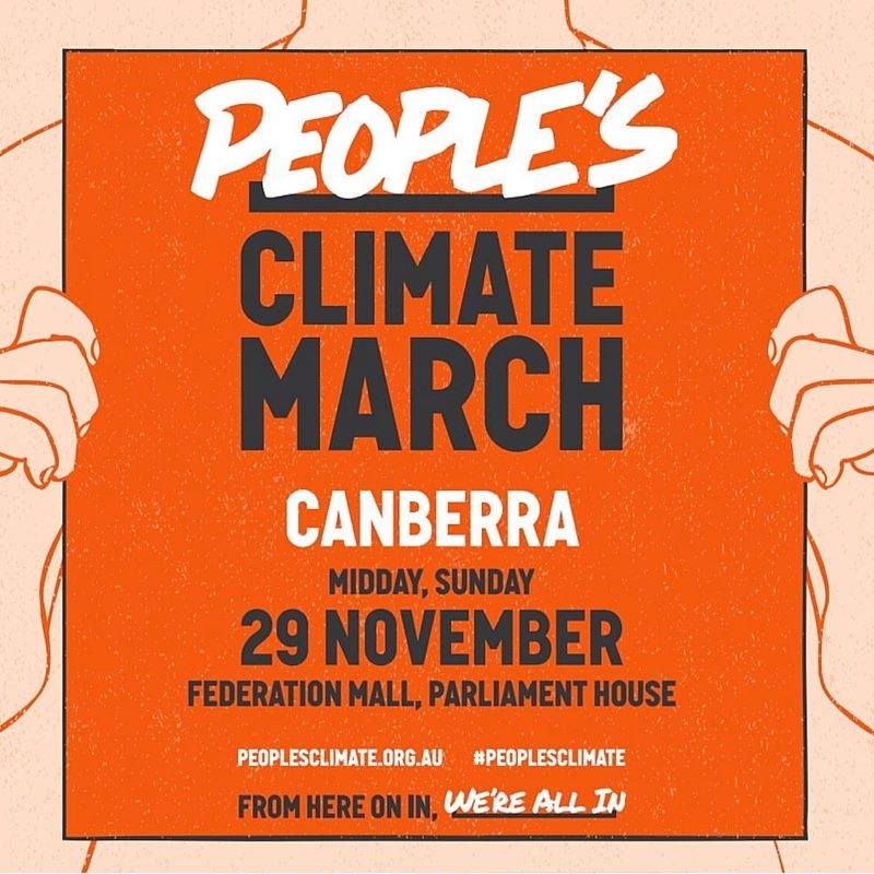 On the eve of the crucial climate negotiations in Paris people in cities all over the world will take to the streets asking our representatives to cooperate to make a deal that gives us a livable planet. We will march the short distance from outside Parliament House to Reconciliation Place down by the lake.